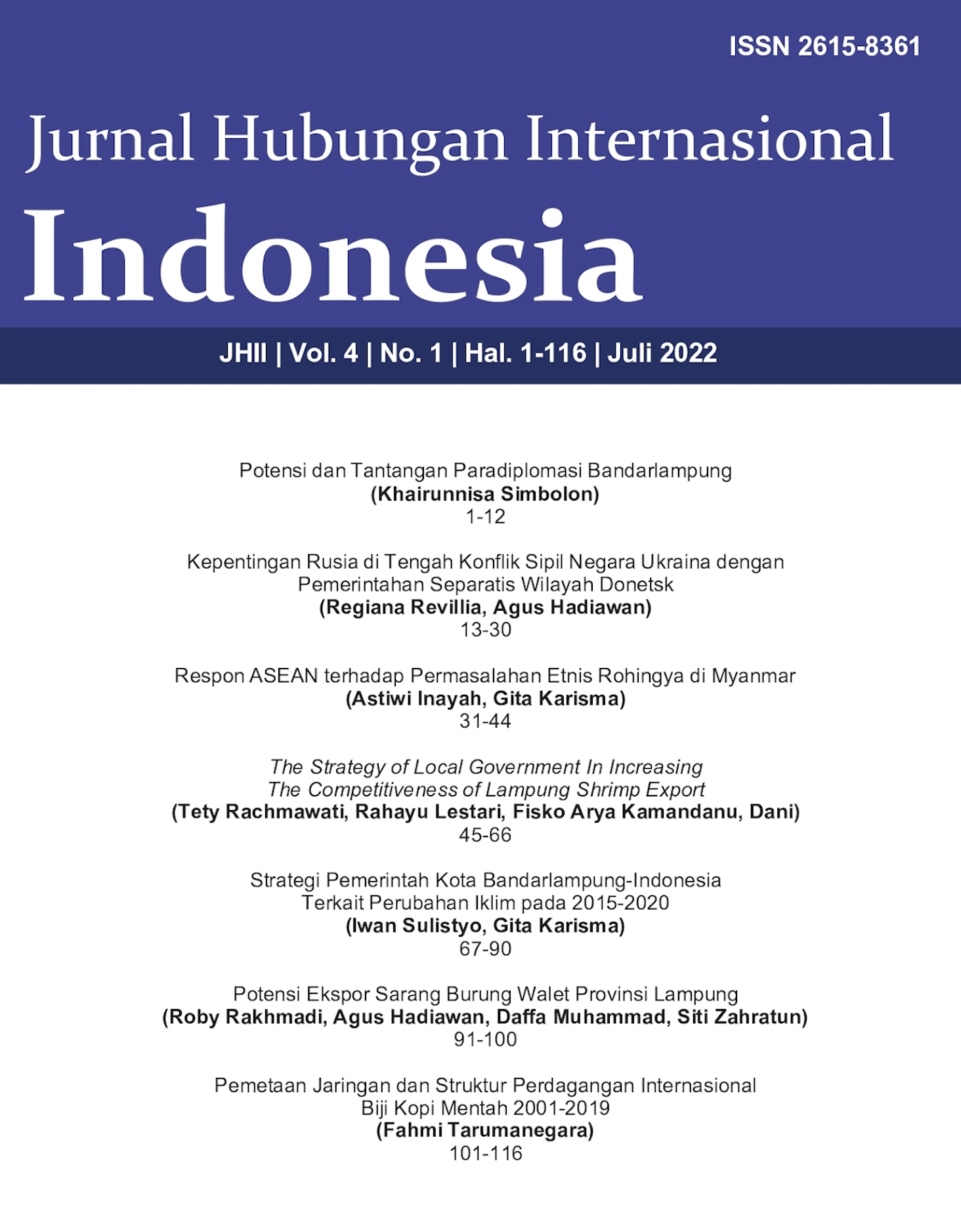 Tulisan selanjutnya dari Roby Rakhmadi, Agus Hadiawan, Daffa Muhammad, dan Siti Zahratun. Potensi Ekspor Sarang Burung Walet Provinsi Lampung, merupakan artikel terakhir di jurnal ini dengan tema paradiplomasi. Tulisan ini dilandasi fakta bahwa Lampung merupakan salah satu provinsi yang memiliki potensi untuk budi daya komoditas ini, mengingat lahan dan keunggulan sektor pertanian provinsi ini.